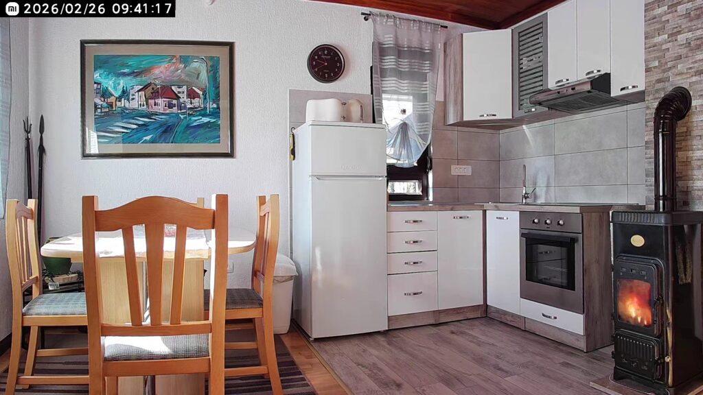 The house is III category, 1/2 + 2 PP for a total of four people, built as a residential building, surrounded by forest at 777 m above sea level. Guests have two rooms at their disposal – a bedroom with a double bed (180×200) and a living room with two single beds (90×200), as well as a bathroom with a shower and a kitchen with a dining area. The kitchen is equipped with a refrigerator with a freezer, a gas stove (+ electricity), an oven, a hood, a toaster, a kettle and a coffee machine. The house has smart TV, DVD, Hi-Fi and fast internet (WiFi). Heating is on wood and electricity.